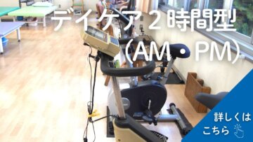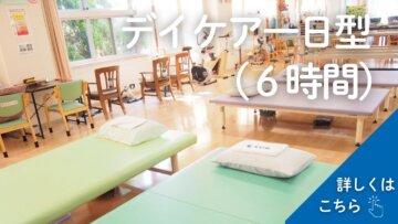 - 利用者様の健康状態や希望にあわせて【1日型(6時間)、2時間型(午前)、2時間型(午後)】3つのコースからお選びいただいております。