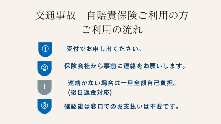 • 診察前に当院宛にご利用の保険会社のご担当者様から事前のお電話をお願い致します。