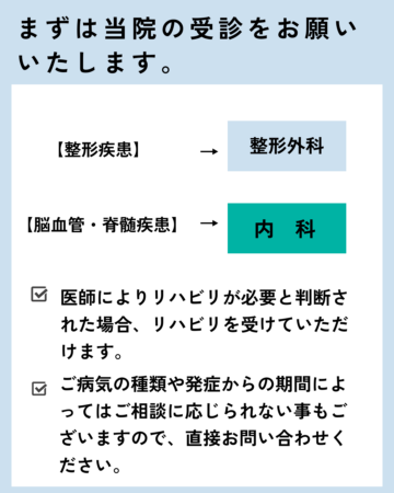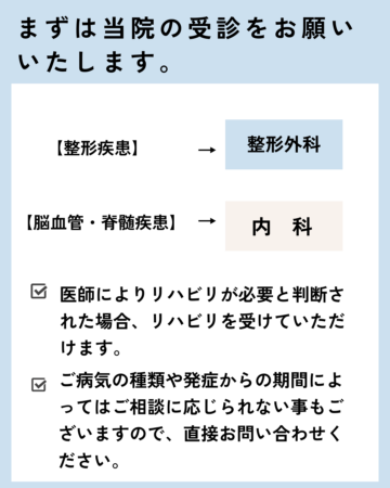 症状が出た日や診断がついた日を基準とし、整形外科疾患は150日間、脳血管疾患は180日間、リハビリを受けることができます。